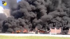 INCENDIO IN UN DEPOSITO DI RIFIUTI A SUD DI ROMA...POMEZIA